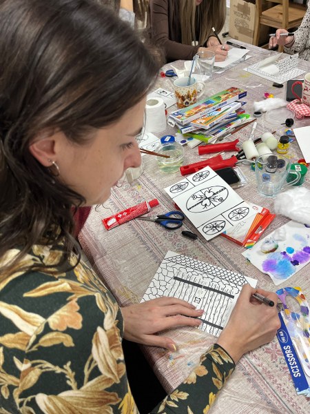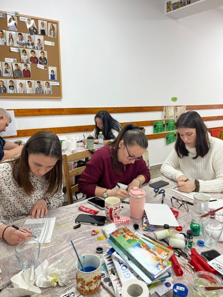 A képzés középpontjában a művészettel nevelés, a hátránykompenzáció és a kooperatív feladatok álltak, amelyek az alapítvány komplex esélyteremtő programjának fontos elemei. A résztvevő pedagógusok sajátélmény alapú tanulás keretében ismerkedhettek meg a vizuális nevelési módszerrel: különleges alapanyagokkal dolgoztak, és változatos kreatív feladatokon keresztül tapasztalták meg a módszertani megközelítés gyakorlati alkalmazását. A nap során egymásra épülő feladatok segítették a vizuális kommunikáció, az önkifejezés és a közösségi együttműködés fejlesztését.
