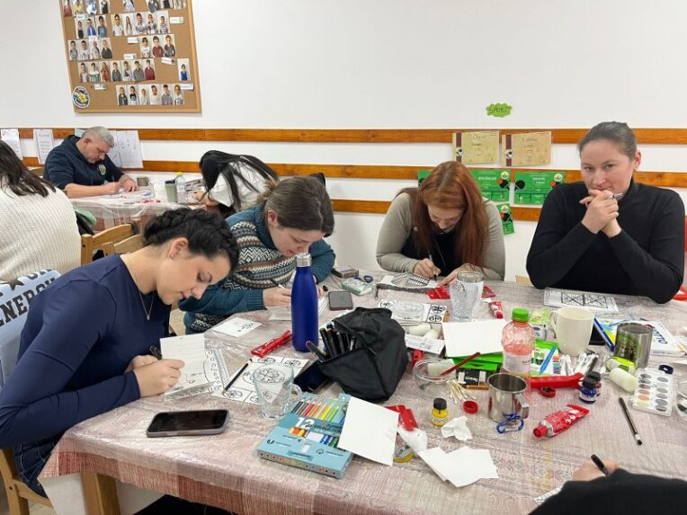 Diószénen gyakorlatközpontú szakmai képzést tartottunk, amely az Igazgyöngy Alapfokú Művészeti Iskola hármas fókuszú vizuális nevelési módszertanának bemutatására épült. A programot az Igazgyöngy Alapítvány szakemberei – többek között Heim-Kőrösi Klaudia és Pap Orsolya – vezették, akik saját módszertani tapasztalataikat és pedagógiai szemléletüket osztották meg a résztvevőkkel.