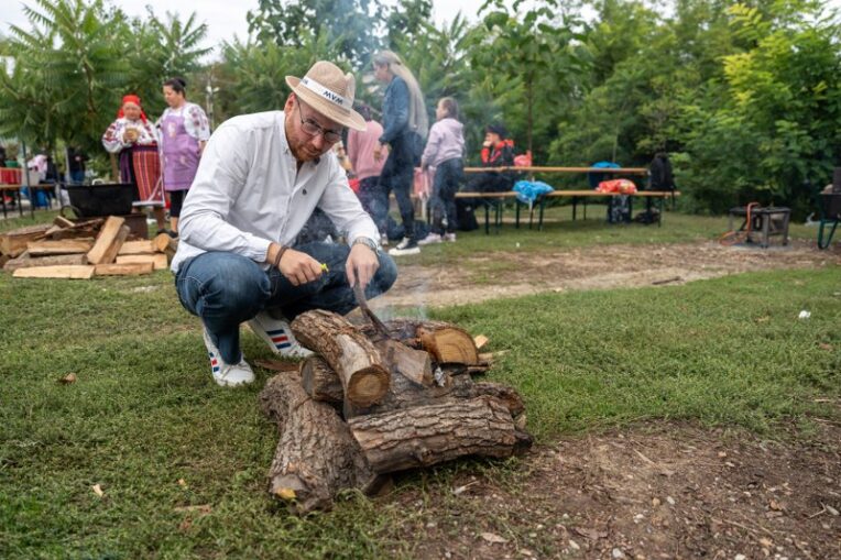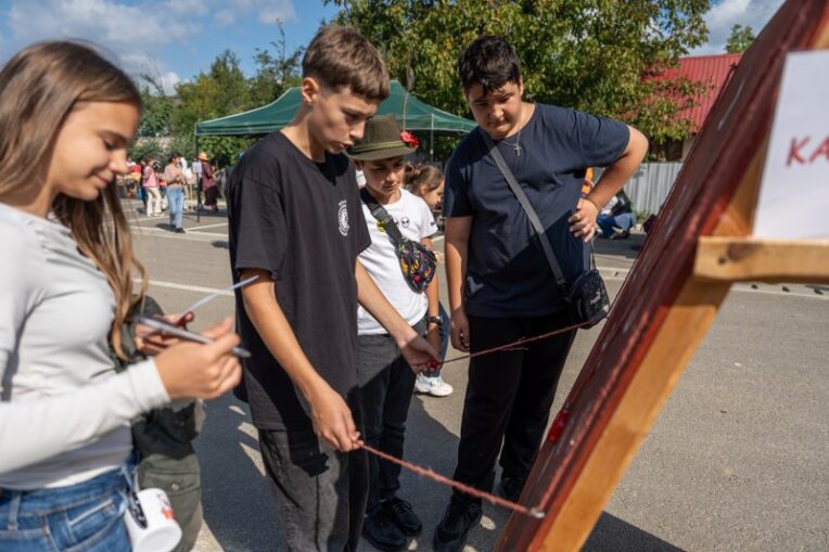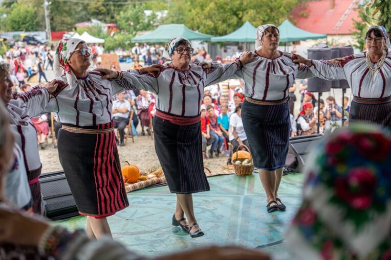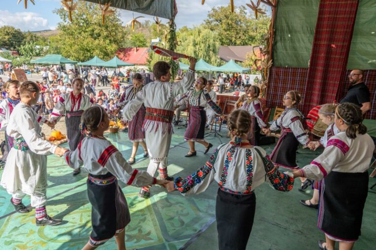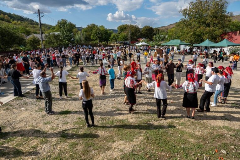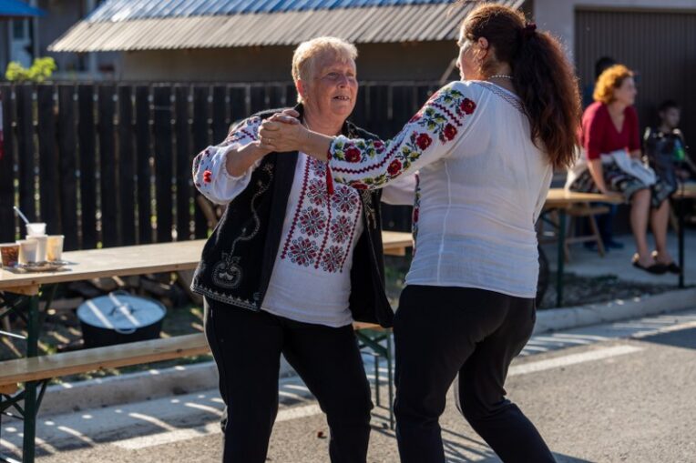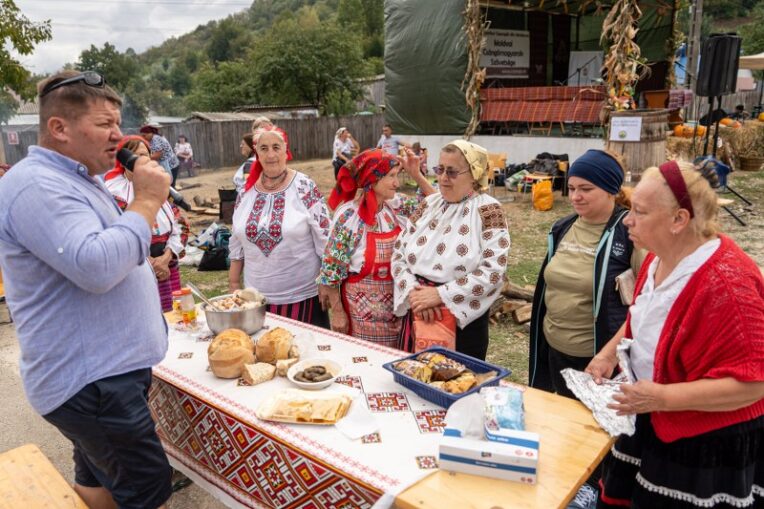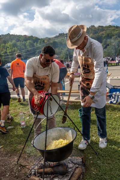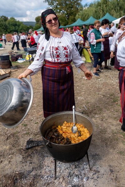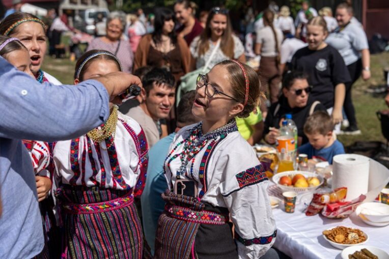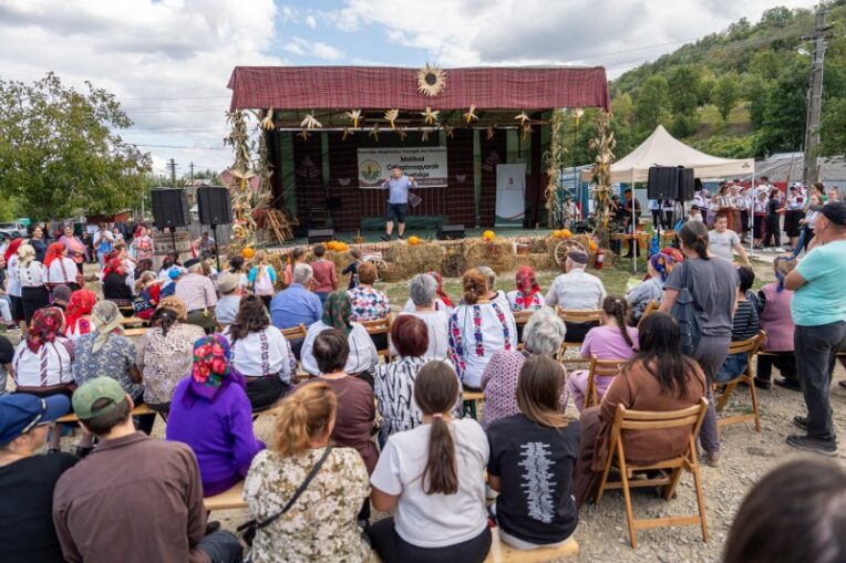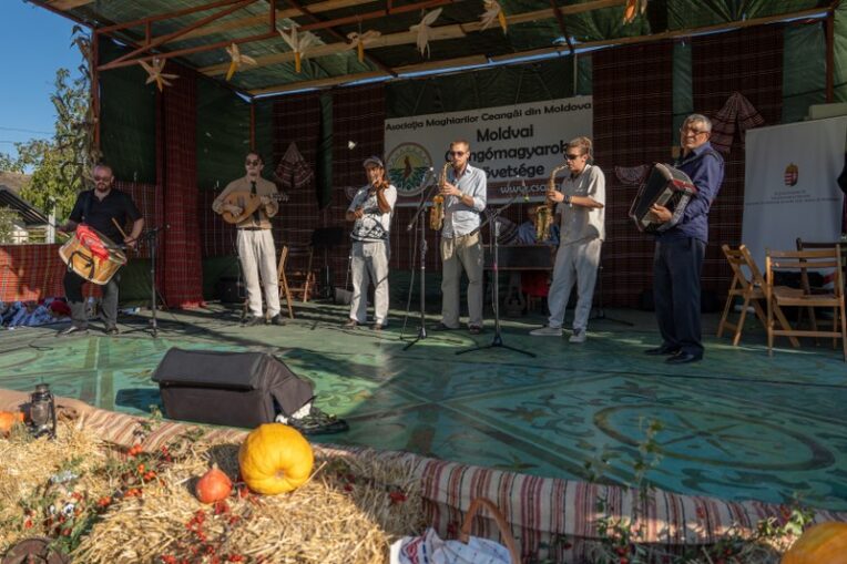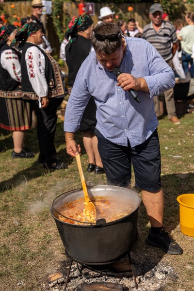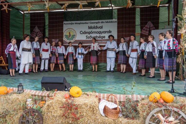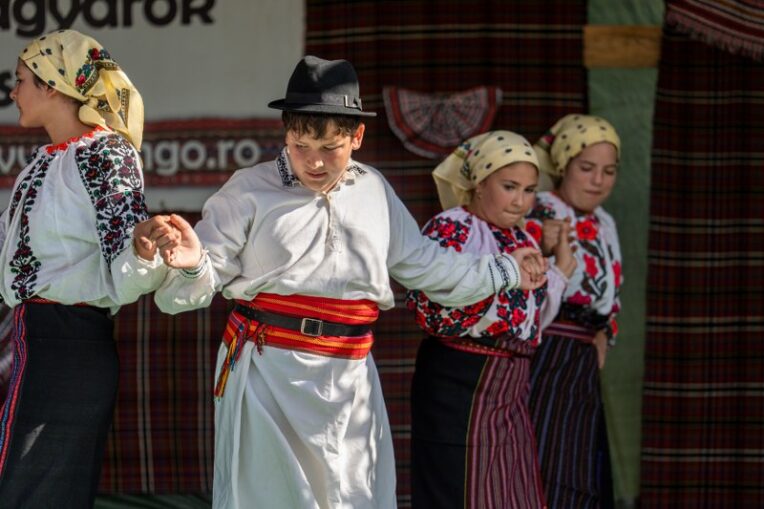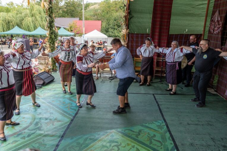 A most már évek óta Magyarfaluban zajló Csángó Tánc és Hujjogató Fesztivál, a Moldvai Csángómagyarok Szövetsége többszáz résztvevőt érintő nagyrendezvényeinek egyike 2025-ben a 12-dik alkalomhoz érkezett. Mint mindig, most is hetekkel korábban elkezdődött a szervezkedés, a fellépők, valamint a sütő-főző csoportok felkészülése, két nappal a Fesztivál előtt pedig már elkezdődött a sürgés-forgás a magyarfalusi pázsinton is: a Szövetség munkatársai, a magyarfalusi házigazdák vidám kalákában készítették elő a helyszínt. Szombaton reggel kilenc óra után kezdtek érkezni a falvakból a csoportok és a messzebbről érkezett vendégek is, a házigazdák önkéntesei pedig a szokásos módon, kaláccsal és teával várták és köszöntötték őket. Tíz órától a helyi templomban magyar nyelvű szentmisével indult a rendezvény, melyet főtisztelendő Csapai Árpád atya celebrált, Măriuț Felix forrófalvi plébános atya, Antonică Petru magyarfalusi plébános atya és Aenoaei Valentin klézsei plébános atya jelenlétében. Ezt követően a teret hangos gyerekzsivaj töltötte be: a Tündérvár – Székely Nagycsaládosok Egyesülete által felállított és működtetett játszótéren beindultak a gyermekek számára előkészített mindenféle pontszerző vásári játékok. Ezalatt a felnőttek vágták a fát, hámozták és aprították a zöldséget, sózták-borsozták a húsokat, mennyei illatfelhő lengte be az egész falut, a csoportok tagjai szomszédoltak, rég nem találkozott ismerősök vették fel újra a félbenmaradt beszélgetések fonalát, újabb ismeretségek, barátságok születtek. A rendezvényen a hagyományoknak megfelelően először Polgár László, az MCsMSz elnöke köszöntötte a jelenlévőket, majd szokásához híven mikrofonnal a kezében végigjárta a tűzhelyek körül tüsténkedő csoportokat, beszélgetett velük, ők pedig bemutatták a kínálatukat, énekeltek, hujjogattak. A tömegben híveikkel együtt jelen voltak Cimpoeșu Cazimir csِíkfalusi és Cocianga Andrei baráti plébános atyák, valamint Timaru Laurențiu Daniel klézsei segédlelkész is. A bőséges és változatos gasztronómiai örömünnep után, amit a rekordszámú, harminckét tűzhelyen helyben készült ebédkülönlegességek garantáltak, a színpadon egy rendhagyó, de felettébb felemelő esemény következett: Fodor Tamás, Magyarország csíkszeredai Főkonzulátusának vezető konzulja ünnepélyes külsőségek között átadta Bogdán Gâtu Klára magyarfalusi hagyományőrző-népművelő asszony számára a Sulyok Tamás, Magyarország köztársasági elnöke által adományozott magyar Bronz Érdemkereszt állami kitüntetést, kimagasló hagyományőrző és adatközlő tevékenysége, a magyarfalusi magyar nyelvoktatásért, felnőttképzésért és turizmusért végzett elhivatott és alázatos munkája elismeréseként. Klára néni laudációját Kovács Melánia, az MCsMSz hagyományőrző programjának koordinátora olvasta fel, és felszólalt maga, az ünnepelt is. Eme rangos kitüntetés átadása nem csupán egy kiemelkedő életpályáért egy személynek járó elismerés, hanem a közösség számára is erős üzenet: a hagyományok ápolása és a kultúra továbbadása valódi és időtálló érték, amely tiszteletet és megbecsülést érdemel. Ezek után került sor a gyermek- és ifjúsági néptáncegyüttesek gálájára. Ezen a fesztiválon ugyanis nem a felnőtt hagyományőrzőké, hanem a gyermek- és ifjúsági néptánccsoportoké a színpadi főszerep. Idén a magyarfalusi (vezetőjük Iacob Liliana), forrófalvi (vezetőjük Sar Claudia), pokolpataki (vezetőjük Benke Pável), csík-falusi (vezetőjük Matei Lenuta), lábnyiki (vezetőjük Bacoi Gabriel), klézsei (vezetőjük Gherguta Cristina), trunki (vezetőjük Ghiur Paulina), lészpedi (vezetőjük Ignat Genoveva) és kosteleki (vezetőjük Vaszi Levente) gyermek néptánccsoportok léptek fel, ez utóbbiak háromkúti vendégekkel (vezetőjük Didici Norbert) is kiegészülve. Fellépett továbbá a Bákóban tanuló középiskolásokból álló Szeret Néptáncegyüttes (vezetőik Botezatu Isabela és Kádár Elemér) és a házigazda magyarfalusi Kerek Alma Falapi Hagyományőrző csoport (vezetője Iacob Liliana). Utóbbiak táncába előre nem tervezett módon maga az MCsMSz elnöke, a magyarfalusi tánckultúra ismerője és művelője, maga is beszállt. A gálaműsor után szabadtéri táncmulatság vette kezdetét, melyhez a Szövetség hangszeres népzeneoktatási programjának népzenész-tanárai, a legjobb növendékeikből létrejött Moldvai Ifjúsági Zenekar muzsikusai és a Radoaia-i hagyományőrző zenekar tagjai szolgáltatták a kiváló tánczenét és amelyben többszáz ember táncolt önfeledten, órákig! Sötétedéskor aztán, ahogy kezdett hűvösre fordulni az este, lassan elcsitult a mulatozás zsivaja. Előbb a távolabb, majd később a közelben lakó résztvevők is összeszedték az ideiglenes táborhelyüket díszítő színes szőtteseket, üstöket, beseperték a tűzhelyeket és a még ekkor is szépen szóló muzsikával kísérve elindultak hazafelé. Az MCsMSz ezúton is köszöni Magyarország Külgazdasági és Külügyminisztériumának, valamint Bákó Megye Tanácsának a támogatását, továbbá a Tündérvár Székely Nagycsaládosok Egyesületének a szervezésben és lebonyolításban nyújtott segítségét.