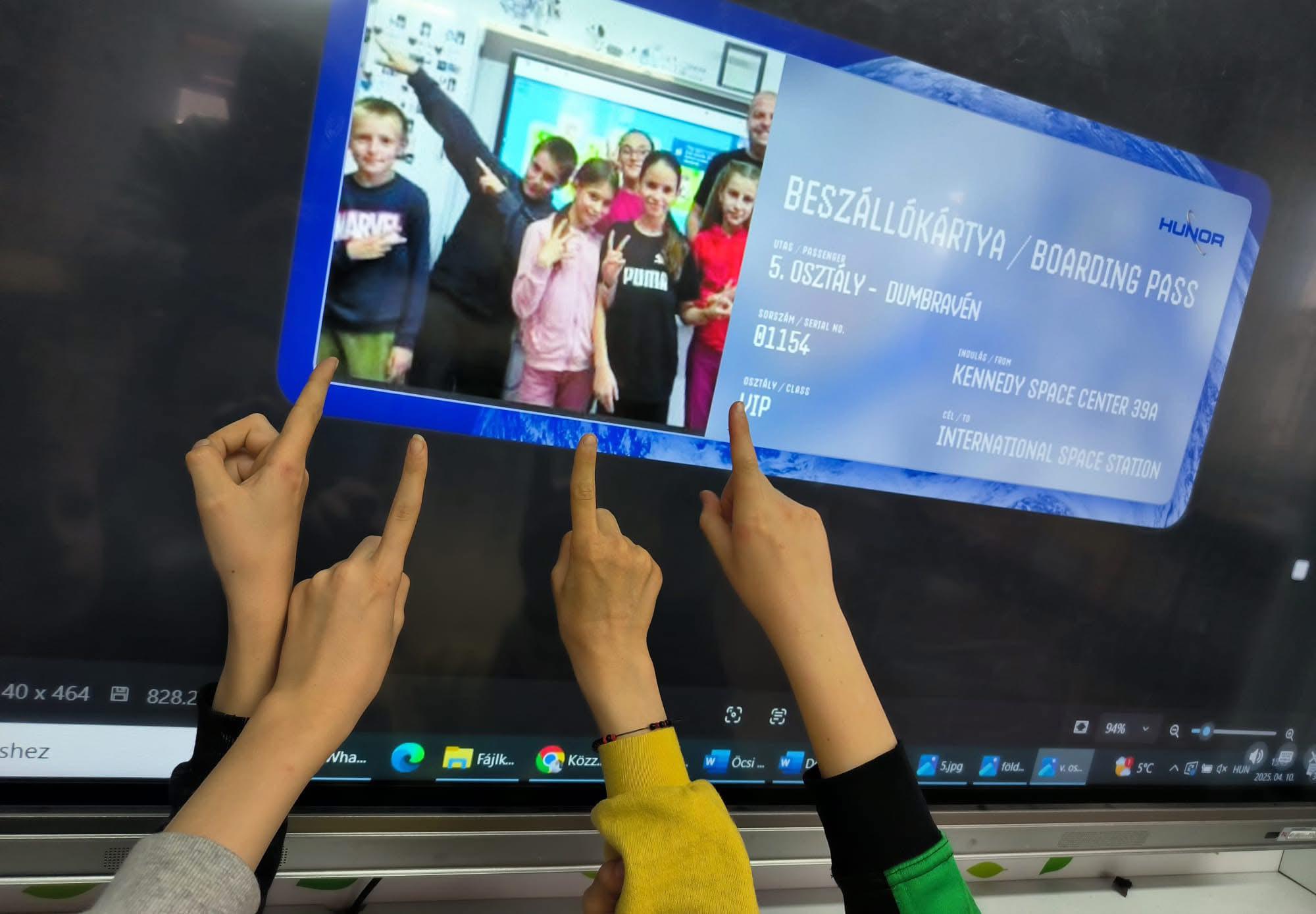 înainte de plecare, Kapu Tibi a vorbit online cu elevii din Dumbrăveni, care au primit simbolic o „carte de îmbarcare” și au „urcat” împreună cu el în spațiu.